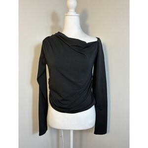J.Crew asymmetrical Neck Long Sleeve Top Sz M Black Minimalist Neutral Goth
