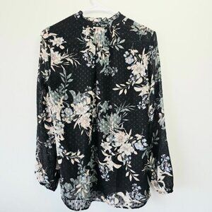 Daniel Rainn Anthropologie Black Floral Long Sleeve Tunic Blouse Size Small NWT