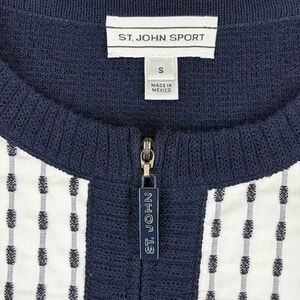 St John Sport Knit Full Zip Jacket Sz Small Navy White.