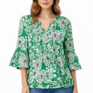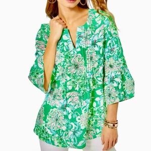 Lilly Pulitzer Hollie Spearmint Green Floral Linen Tunic Top