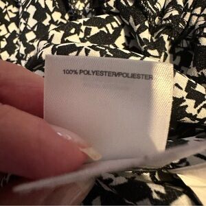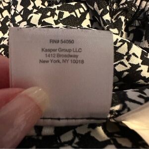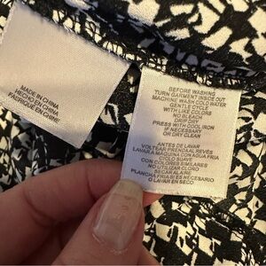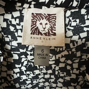 Chic sleeveless Anne Klein midi dress with a stylish black and white pattern, two side pockets, side drawstring and a V neck. Shoulder to bottom hem is 46”. Pre-owned. Size 6