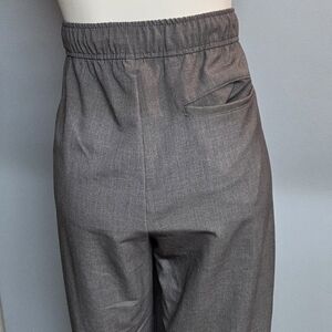 Old Navy's gray ankle pants feature a pleated pull-on pant for work and play, a comfortable elastic-drawstring waist and a relaxed hip and thigh. The pants have front pockets and a back right welt pocket with a straight leg that hits at the ankle. Perfect for any occasion, these pants offer both style and comfort.