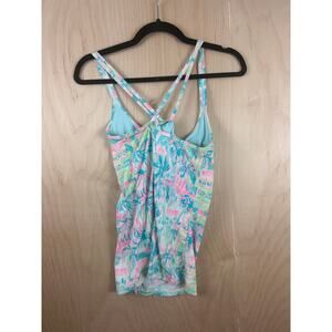 Lilly Pulitzer Luxletic Palm Print Tank Top M Built-In Bra Athletic