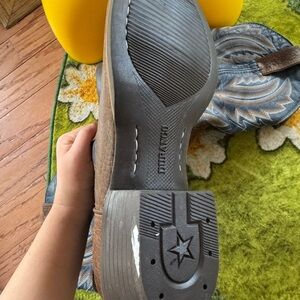 Durango boots with a classic western style. Features brown leather with blue accents. Perfect for any cowboy look.
