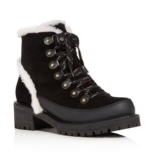Tory Burch Cooper Suede and Sheep Fur Black Boot
