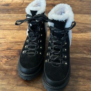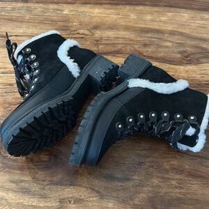 Tory Burch Cooper Suede and Sheep Fur Black Boot Sz8
