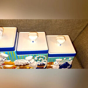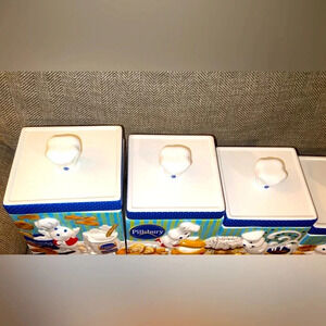 Vintage The Pillsbury Doughboy & The Danbury Mint 2000 Kitchen/Dining Canister Collection 4 Canisters with 4 Matching Lids Food Storage Container Set Cookie Jar Collectibles