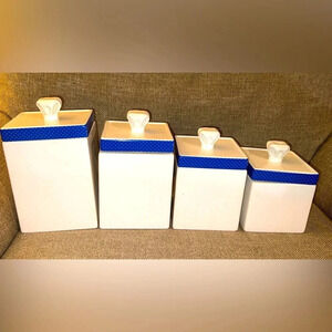Please inspect pictures closely for any flaws. In my opinion, it’s in good condition. There may be dust/dirt/grime present that will need to be cleaned upon arrival from years of storage. One canister has a small chip on the front but isn’t hardly noticeable. The set doesn’t have any significant damage at all. It’s a beautiful and very sought after set. Hard to find. It weighs approximately 16 pounds before packing and shipping. Please check out my other vintage Pillsbury collections within my closet!