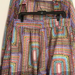 Chic shirt and shorts with a geometric pattern. Features a blend of vibrant colors. Perfect for a bold fashion statement.