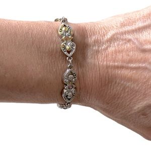 Cute Vintage Avon Heart Shape Links Bracelet with Pink Rhinestones