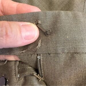 - Pants are flat front, zipper hook front closure, and 2 front pockets. The hook on the zipper is loose it need a stich.