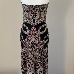 Nicole Miller Strapless Paisley Maxi Dress Boho Evening Gown