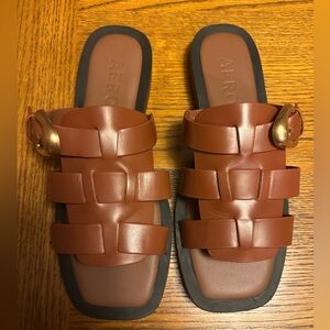 Aerosoles Women's St. Marks Sandal in Gingerbread/Brown Color, Size 8.5, are a comfortable slip-on sandal perfect for summer, fall, and spring seasons. With a flat heel and cushioned features, this leather sandal provides all-day comfort. The gingerbread color adds a touch of whimsy to the classic brown design, making it a versatile and stylish choice for any occasion. Made by the brand Aerosoles, this slide sandal is a practical and fashionable addition to any woman's shoe collection.