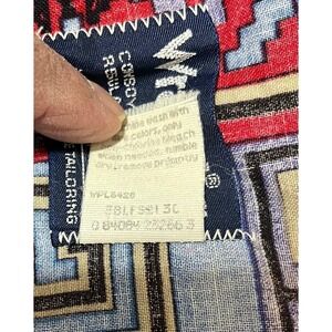 Keywords: Wrangler western shirt, Cowboy Cut, geometric print, red blue shirt, long sleeve western, mens western wear, rodeo shirt, Americana style, southwestern print, button up shirt, casual western, XL tall, single needle tailoring