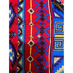Own a piece of Western heritage with this vibrant Vintage 90's Wrangler Cowboy Cut Western Shirt. The striking geometric print in bold red, blue, and yellow commands attention, while the classic button-down style offers timeless appeal. Designed for comfort and durability with single needle tailoring, this shirt ensures you look and feel your best. Perfect for a rodeo event, a casual day out, or adding a touch of Americana flair to your wardrobe.