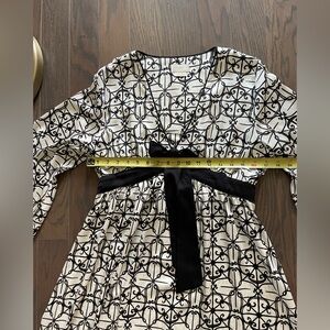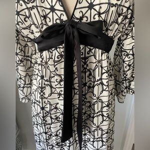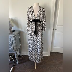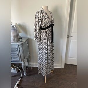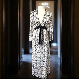 Indulge in luxurious comfort with this stunning Kate Spade Dream A Little Dream dress/nightgown. The black and white floral pattern on satin is complemented by a V-neckline and long sleeves, making it perfect for cooler nights. Pullover, empire waist. Perfect for women who want to feel comfortable and stylish while they sleep.