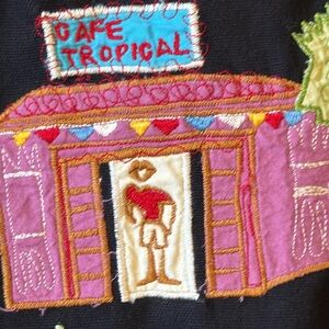 Hearts of Palm Black Embroidered Jacket Tropical Floral Boho Button Up Cotton 14