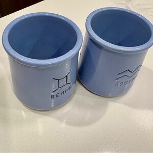 Add a touch of celestial charm to your home with this set of two zodiac-themed terracotta pots, perfect for both astrology enthusiasts and kitchen use. This limited edition product by La Fermiere features one Gemini and one Aquarius pot, both in a periwinkle hue. Each piece features “La Fermiere” written on the opposite side for a charming, artisan feel. These pots are previously used but in good condition and are impressively versatile—microwave, freezer, and oven safe. Use them to, bake or serve individual portions, store small household items or display small succulents or herbs. Whether you’re a zodiac lover, a fan of rustic French-inspired ceramics, or simply looking for stylish multi-purpose pieces, this set is both practical and eye-catching. Perfect as a gift or a special treat for yourself!