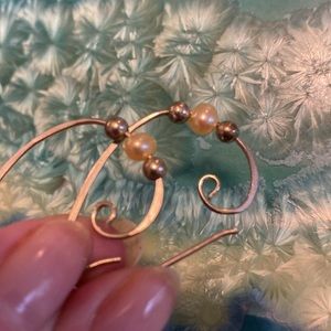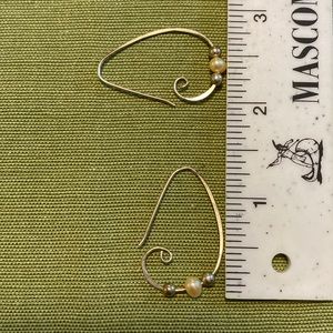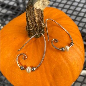 Handmade Silver Possibly Sterling Wire Earrings With Pearls. I’m unsure if the pearls are real or not. I purchased these from a craft fair and have a hard time getting them through my pierced ear holes. They are too thick for my pierced ears. These are used and are handmade so they aren’t perfect including scratches and other signs of wear. There may be other imperfections. Measurements are approximate and colors may be off because of lighting. Bundle with other items from my closet and only pay 1 shipping fee up to 5 lbs packaged.