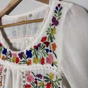 Vanessa Virginia Embroidered Pom Pom Peasant Blouse Anthropologie Womens 8 Boho