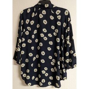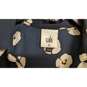 Cabi # 5705 "Go To Button Up" Navy/White Floral Print 3/4 Sleeve Blouse Size Extra Small. The Bust is 42" Around and Length is 28". This is an Oversize Design, so Please take note of the Measurements.