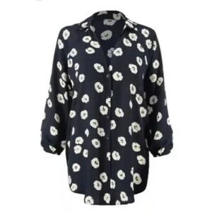 Cabi # 5705 "Go To Button Up" Navy/White Floral Print 3/4 Sleeve Blouse SZ XS