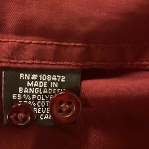 Bay Fashion Men’s maroon long sleeve button down shirt. Size 2XL. 65% polyester, 35% cotton. Excellent preloved condition.