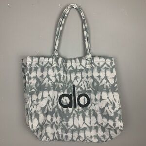 Carry-it-all in style with the Tie Dye Shopper. This perfectly oversized, heavy-duty canvas bag features corded handles, an Alo Yoga logo, and a gorgeous grey tie-dye pattern.