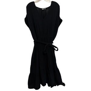 Ruffle Hem Tiered Dress Lightweight Flowy Gauze Neutral Black Gap Size XXL