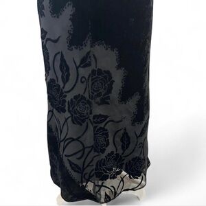 Vintage Evan Picone Black Velvet Cowl Neck Floral Midi Dress