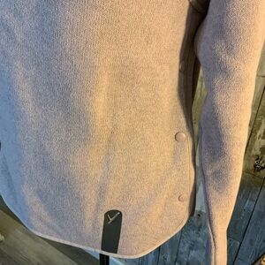 Stay cozy and stylish with this elegant high-neck sweater. Perfect for any occasion, it offers both comfort and warmth.100% polyester and 77% is recycled. Pit to pit is 20 and length is 25 1/2. Like new.