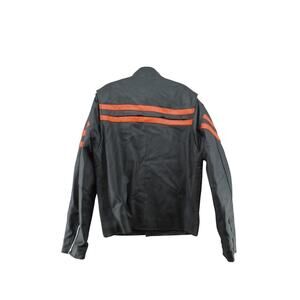 Vintage Leather Café Racer Jacket M–Orange Racing Stripe Moto Biker Heavyweight
