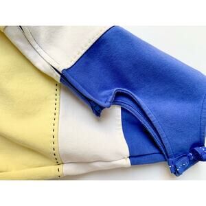 striped, colorblock, tank dress, tiered, sleeveless, sundress, cotton blend, blue, yellow, and white