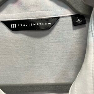 Travis Mathew Men's Light Blue and Pink Polo Shirt Size L