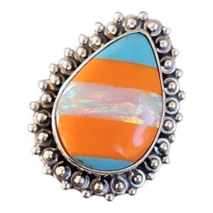Aurora Fire Opal Stripe Inlay Blue Orange Teardrop Ring Size 11 925 Sterling