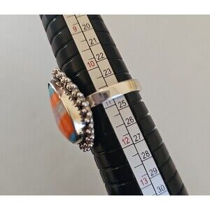 Aurora Fire Opal Stripe Inlay Blue Orange Teardrop Ring Size 11 925 Sterling Silver NWOT