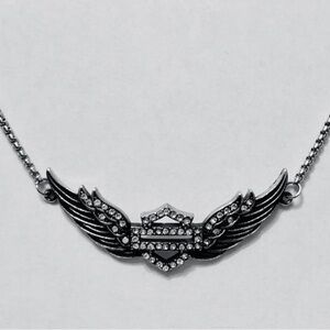 Harley-Davidson Silver and Black Winged Heart Necklace