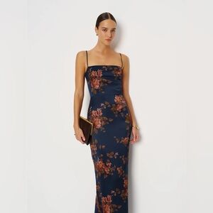 NEW Reformation Frankie Silk Maxi Navy Floral Dress Gown Lyric | US 0 UK 4