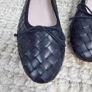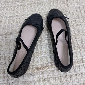 Loeffler Randall Woven Leather Ballet Flats Black Mary Jane 7B Minimalist Chic