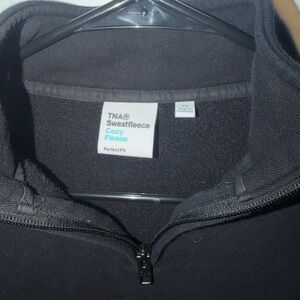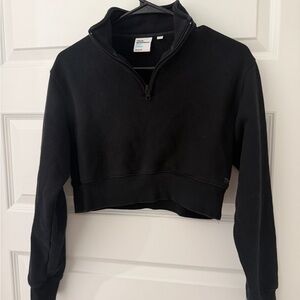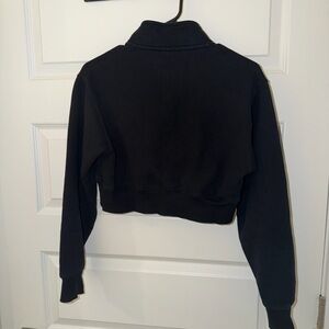 Stylish black cropped sweatshirt from Aritzia (TNA action)Features a half-zip design. Perfect for casual wear.