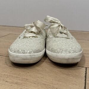 Keds Kate Spade Glitter Sequin White Sneakers Womens Size 9 Wedding Party Shoes