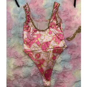 NWT Sugar Thrillz Pink Chain Bodysuit & Shorts Set Large