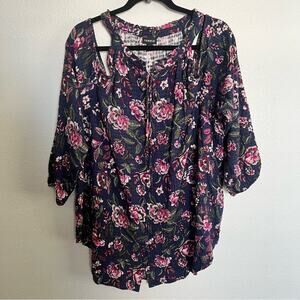 New J. Jill PureJill Velour Oversized Top Black Violet Purple Long Sleeve Sz 3X