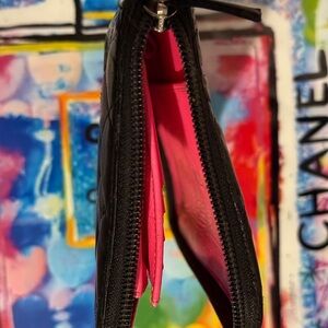 CHANEL Quilted Cambon Long Wallet Organizer Clutch. Black and Pink Leather. Outside back pocket