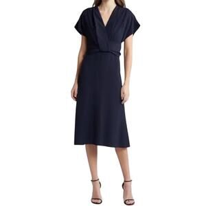BOSS by Hugo Boss dress Debasa2 V-Neck Short Sleeve Ruched Waist A-Line Midi size 14 F0345