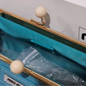 Miu Miu Teal Blue Patent Leather Kiss-lock Clutch GWP VIP ITEM NWB