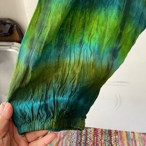 NWT• Made in Nepal Harem Pants Green Tie Dye Boho Festival Cotton Crinkle Genie