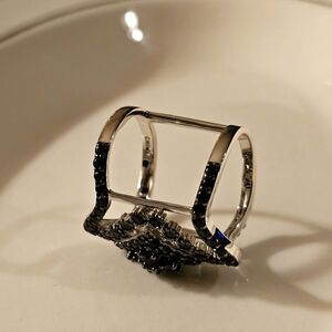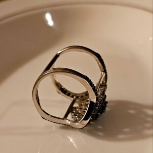 This stunning women's ring features a sophisticated design with silver and black accents. Perfect for adding a touch of elegance to any outfit.