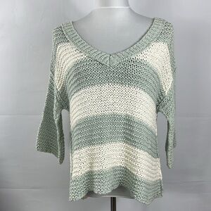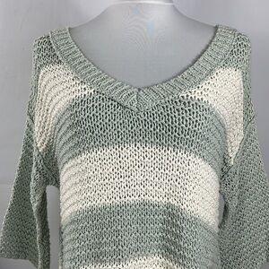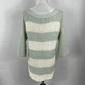 Free People Women's Parkslope Stripe Mint Ivory Combo Loose Knit Sweater Size S