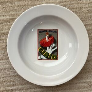 Pottery Barn Vintage Posters Pasta Bowl, Serving Dish. 9.75" rim to rim, 7" at the opening and 2.5" tall.